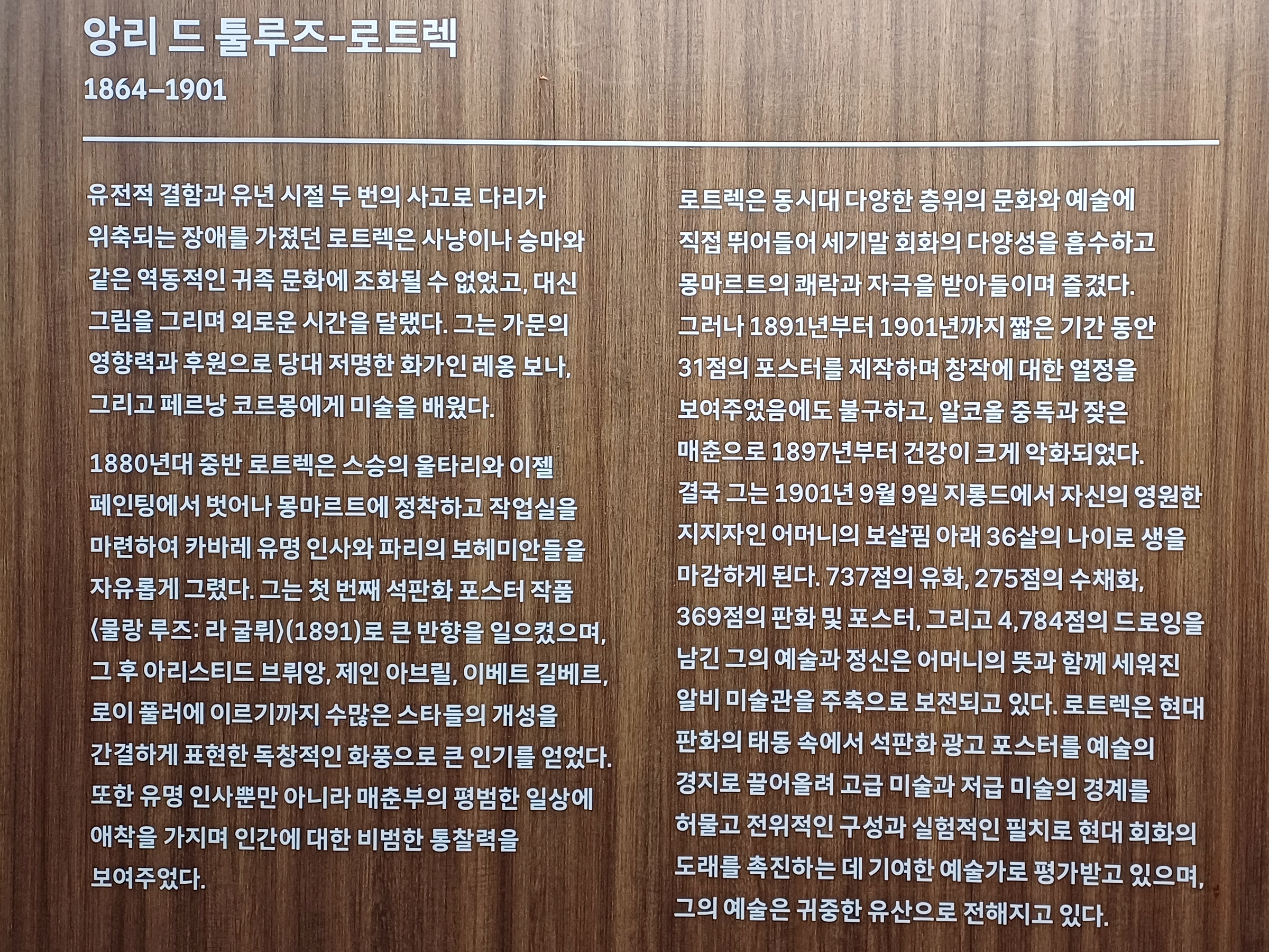 마이아트 뮤지엄에서 열린 앙리 툴루즈-로트렉 전시회에 다녀왔어요.
