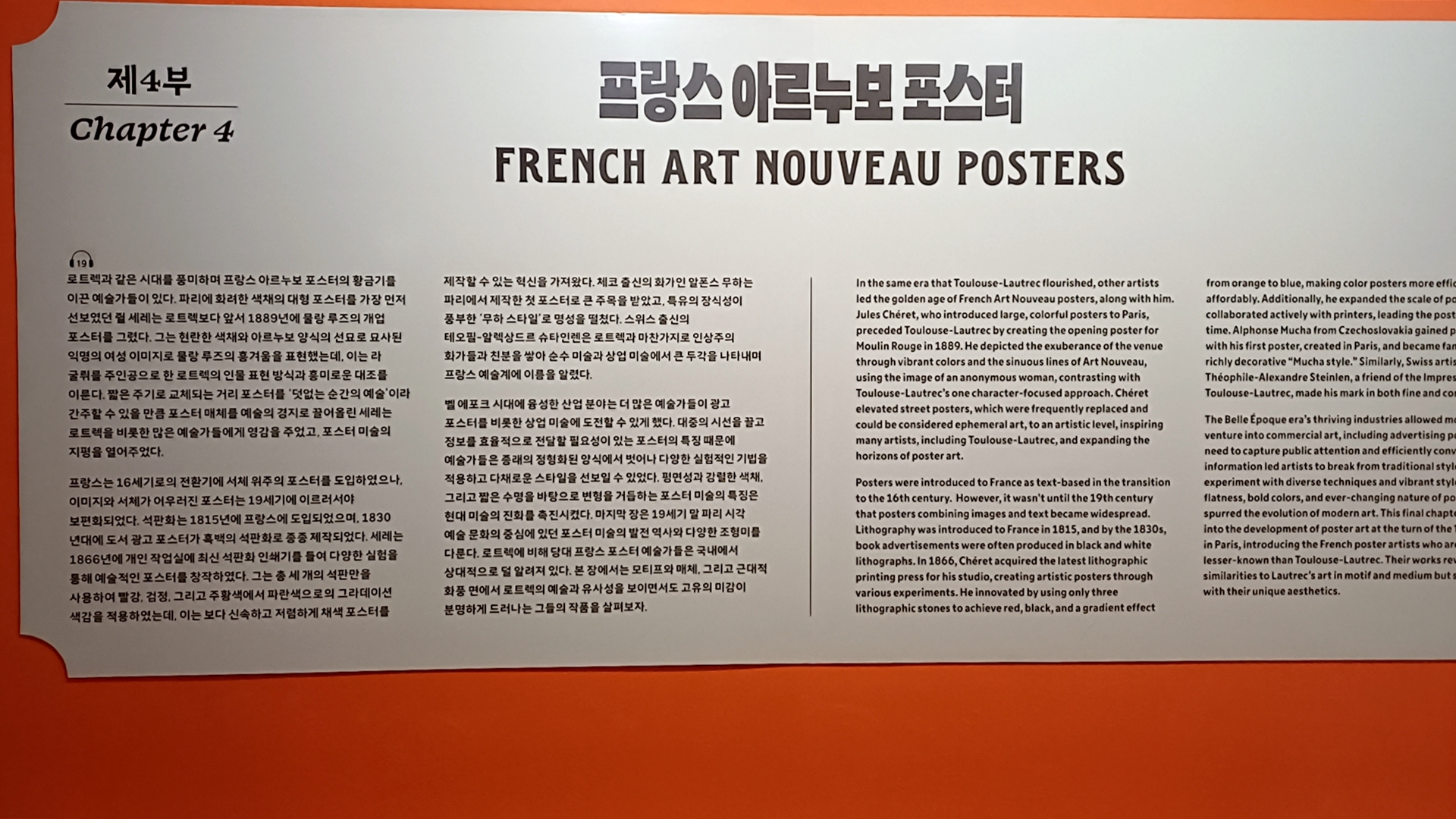 툴루즈-로트렉 외에도 동시대에 활동했던 쥘 세레, 앙리 가브레엘 이베스 등 다른 화가들의 포스터 작품들도 감상할 수 있습니다. 특히 제가 가장 좋아하는 화가 중 하나인 알폰스 무하의 작품들도 많아서 좋았어요.