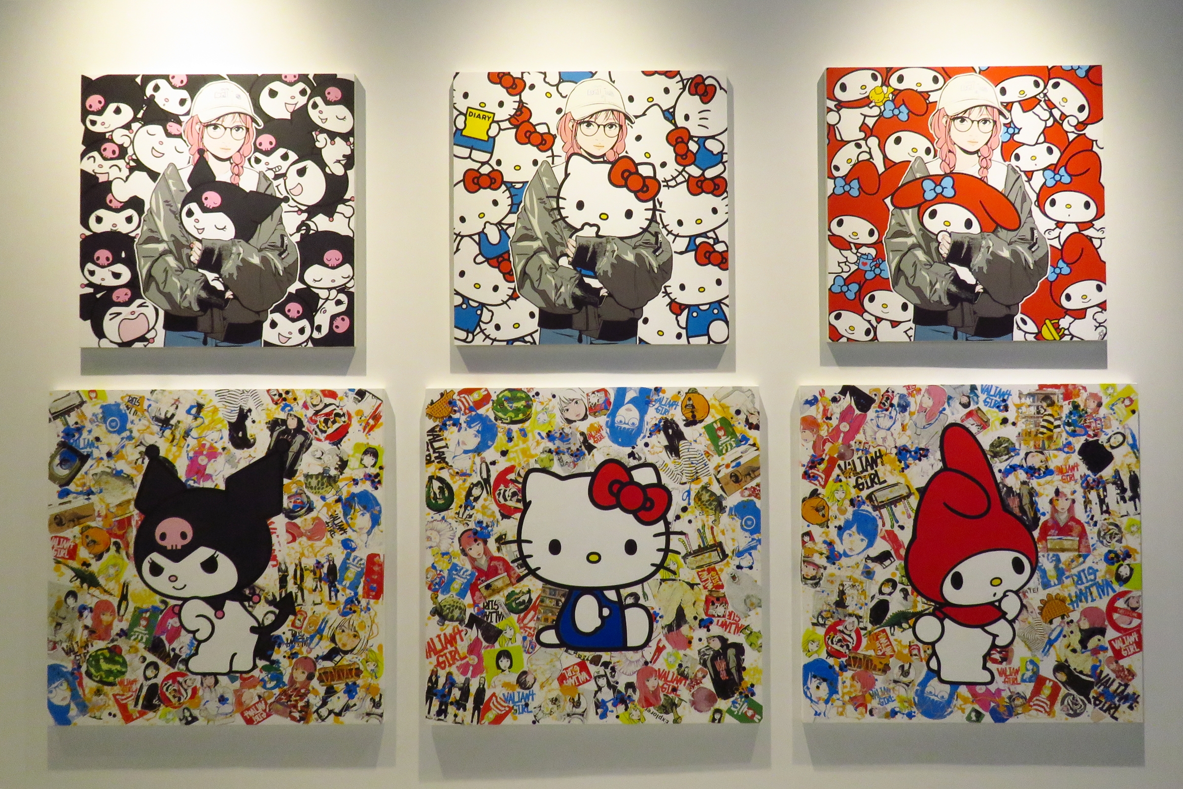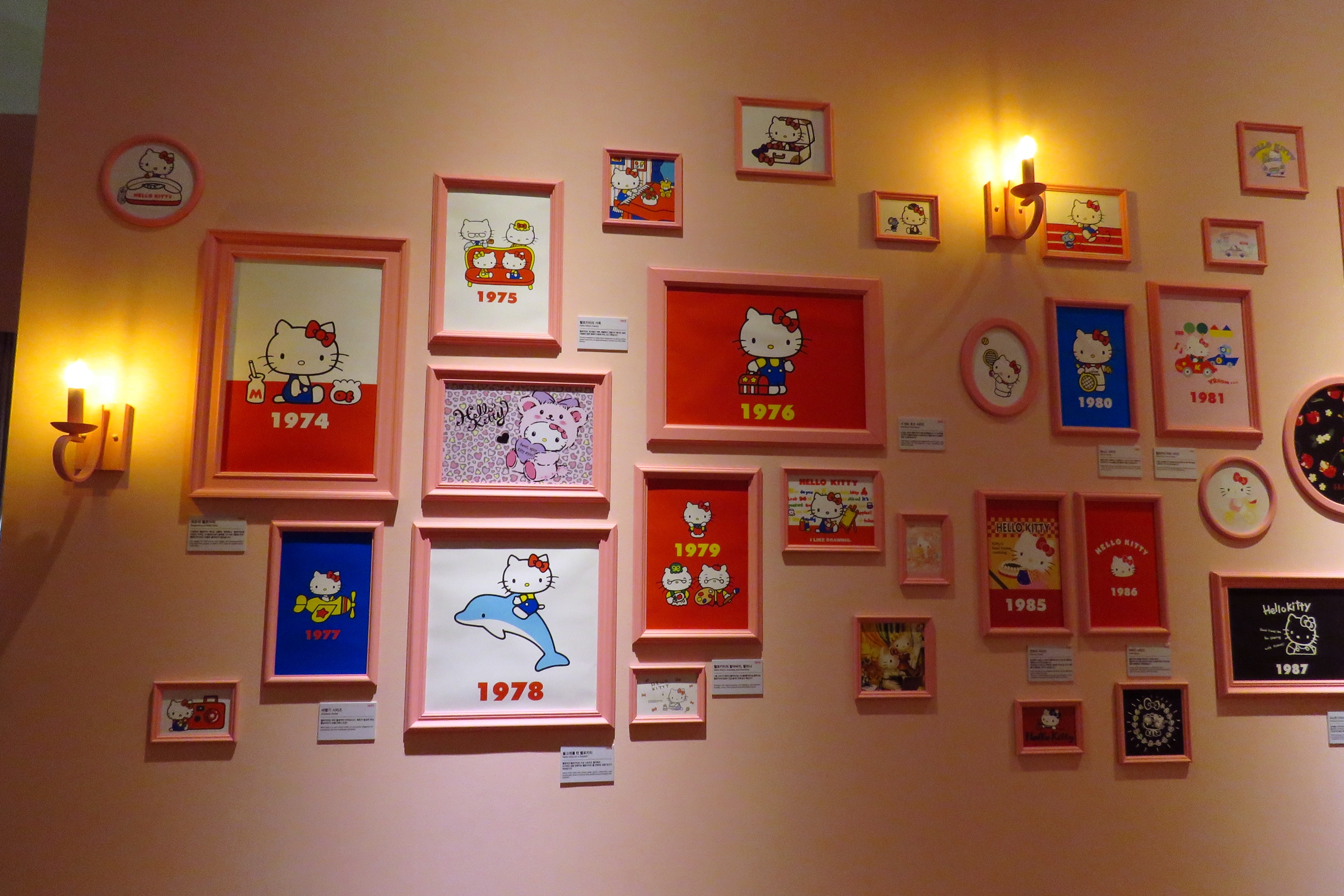 사진 촬영 허용구역에는 헬로키티 외 산리오의 인기 캐릭터들의 일러스트, 인형, 캐릭터 상품 등의 자료들이 있습니다.